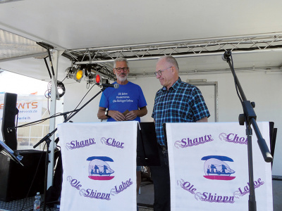 Musikalisch war für jeden etwas dabei, ob Jazz mit dem Trio Jacob Eckert oder Shantys mit dem Shantychor der Ole Schippn. Harry aus Laboe und die Strandpiraten sorgten für tolle Stimmung am Samstagnachmittag. Harry, im richtigen Leben Harald Jahn, trat übrigens schon 1974 bei den damaligen „Laboer Tagen“ mit einer Schülerband in der Musikmuschel auf, das ist also schon 50 Jahre her. Und wie immer konnten die Zuschauer bei Liedern von Hans Albers, Freddy Quinn und vielen anderen mitsingen und schunkeln. Denn bei seinen Auftritten geht es stets um Meer, Fernweh und die Seefahrt. Meer-Musik eben.