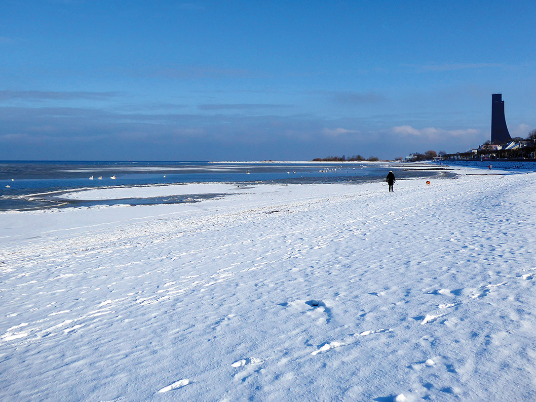 Und wenn am Wochenende die Sonne schien, gab es kaum etwas Schöneres als einen ausgedehnten Spaziergang an der frischen Luft, direkt am Wasser entlang, mit Blick auf den verschneiten Strand. Wie so oft im Leben gilt: Was für die einen eine kleine Herausforderung ist, ist für die anderen pures Vergnügen. Betrachten wir das winterliche Laboe also einmal ganz bewusst von seiner schönsten Seite.